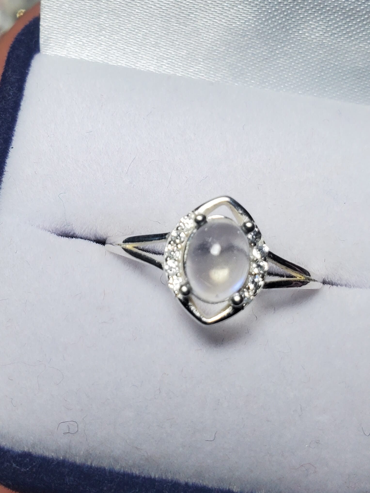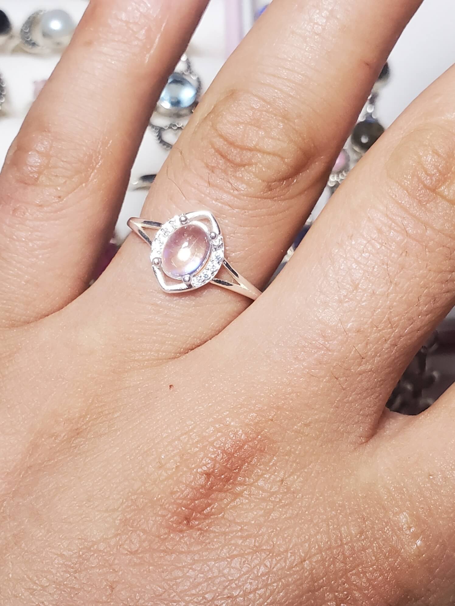 La magia discreta que buscabas. Una delicada Piedra Luna natural de corte ovalada, rodeada de un halo de circonios blancos brillantes y elaborado a mano en Plata 925. Es la gema de la calma y la intuición. Fomenta el equilibrio emocional, protege a los viajeros y atrae la buena suerte en el amor.