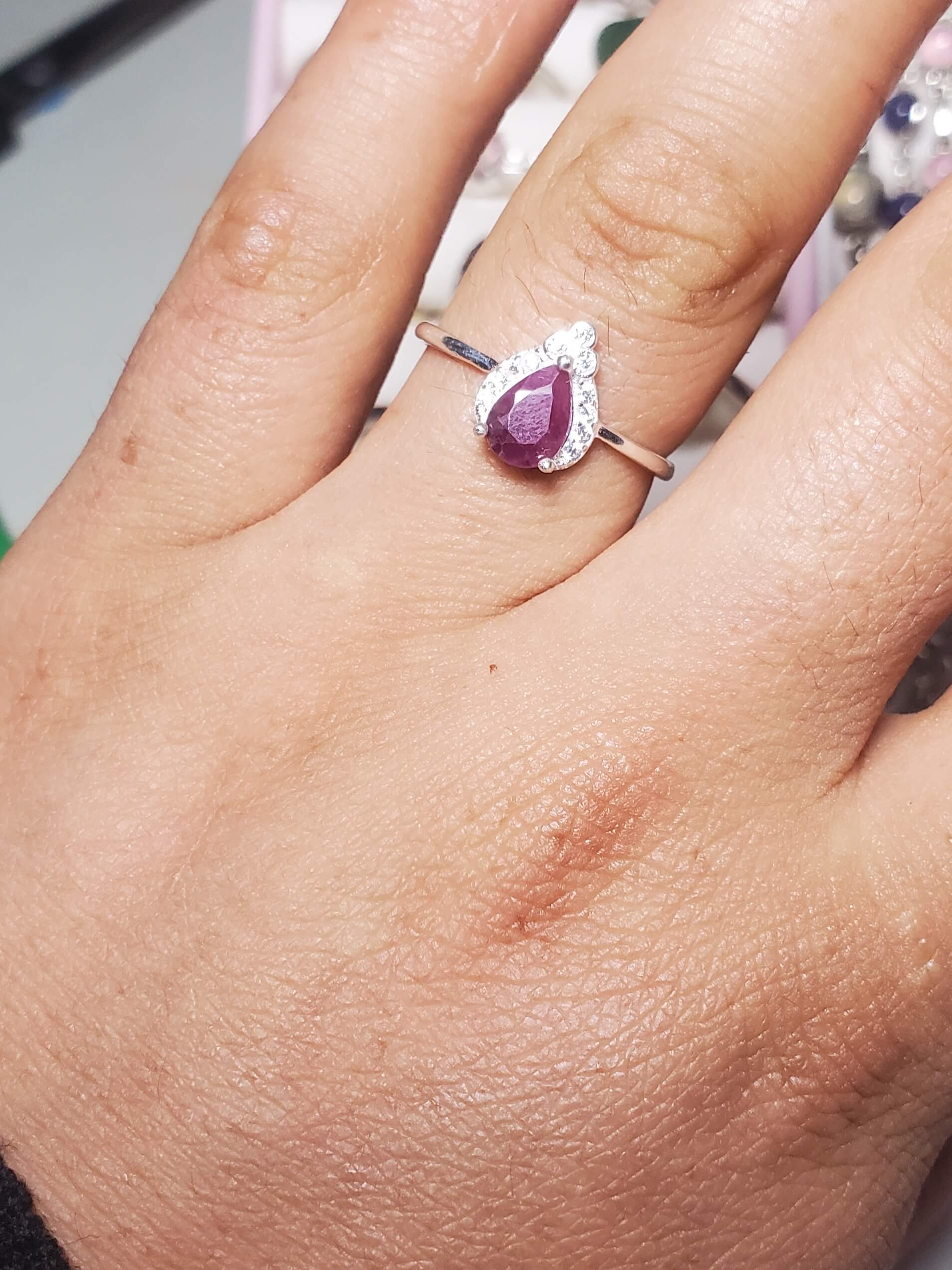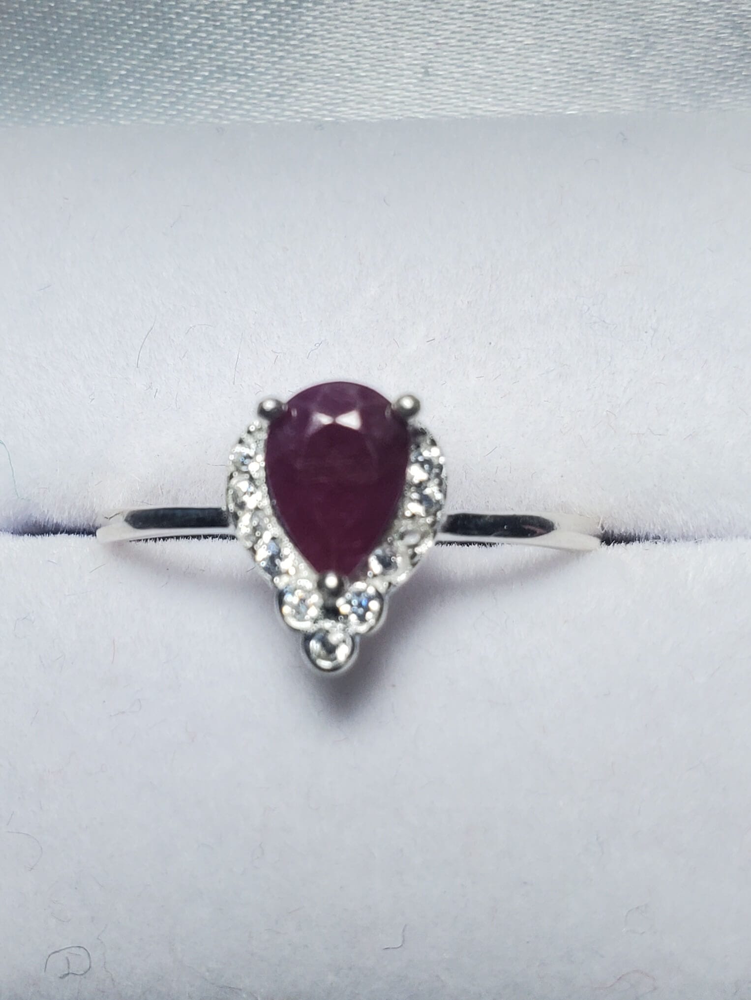 Un diseño que irradia pasión. Un vibrante Rubí natural en el centro, rodeado de un halo de circonios blancos que maximizan el impacto visual, dándole un aspecto de alta joyería, elaborado a mano en en Plata 925. Pieza única de vitalidad, la abundancia y el amor.