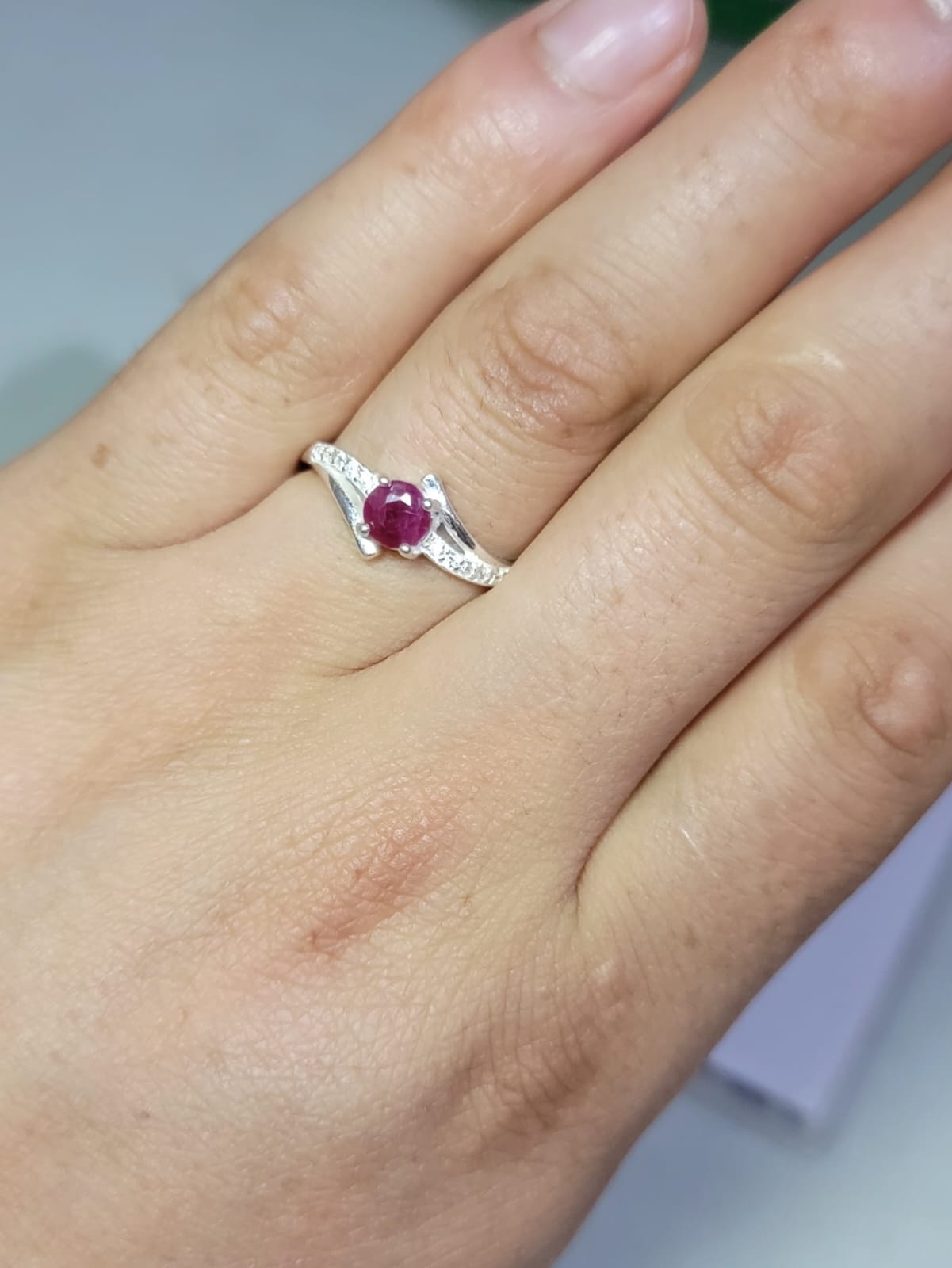 Diseño único y exclusivo. En el centro, un auténtico Rubí Natural , la gema del amor, la pasión y la vitalidad. irradia un color profundo e inolvidable. acompañado por halo de finas Circonitas brillantes, elaborado a mano en plata Ley 925.