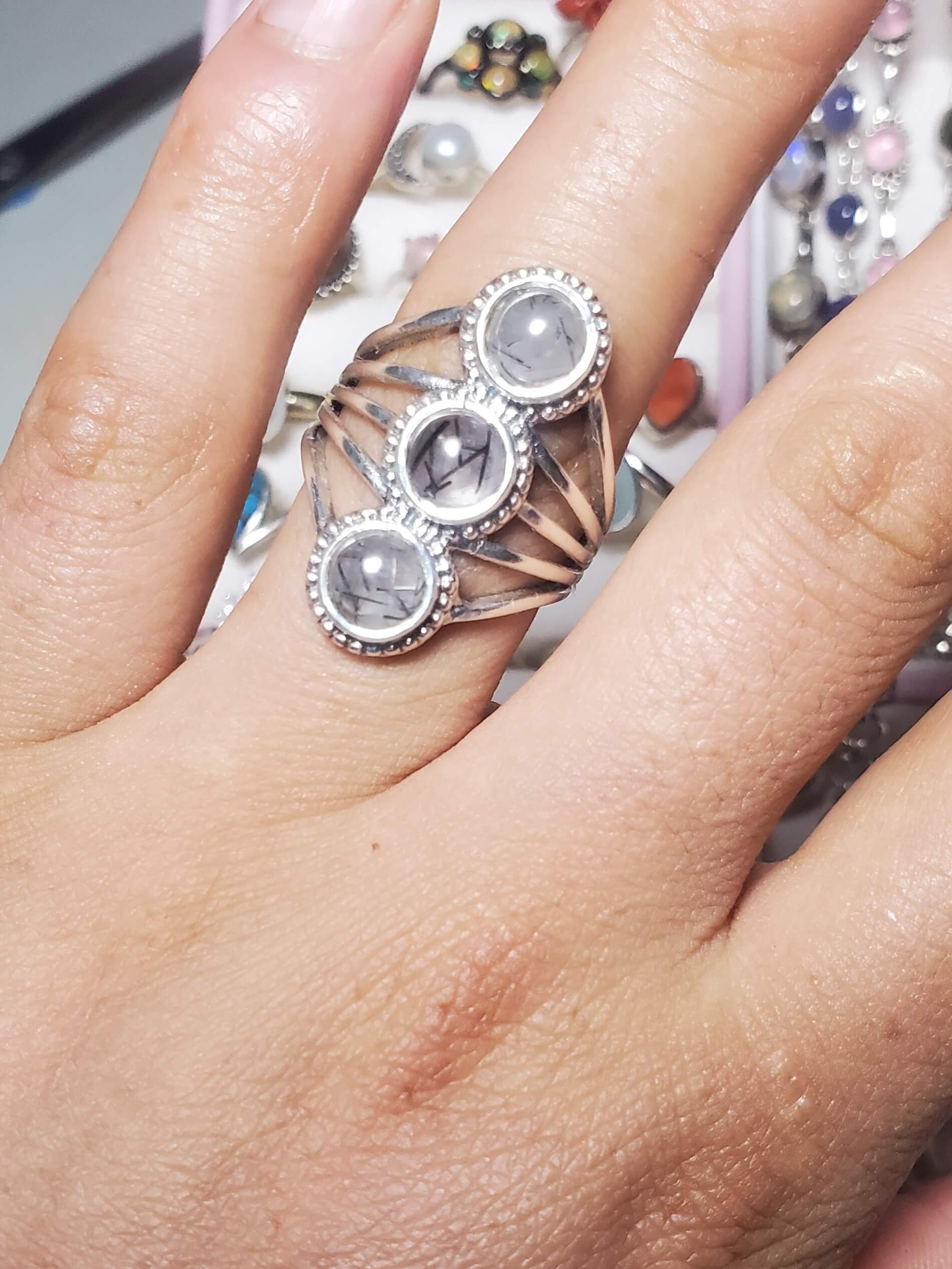 Potencia tu vida con el lujo y la protección de la naturaleza. Anillo de piedra natural cuarzo rutilado negro elaborado a mano en plata 925, no es solo una joya; es un potente amuleto: Actúa como un escudo protector disipando la energía negativa y fomenta la fuerza de voluntad. Es ideal para quienes buscan claridad y un impulso para manifestar sus metas.