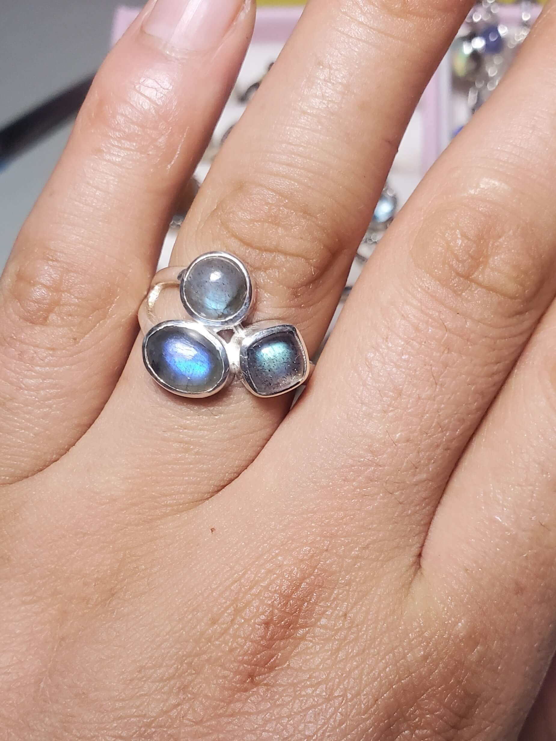 Anillo de labradorita elaborado en plata 925, tres destellos de magia. una pieza de transformación, intuición y protección, perfecto para quienes buscan una joya poderosa y única.