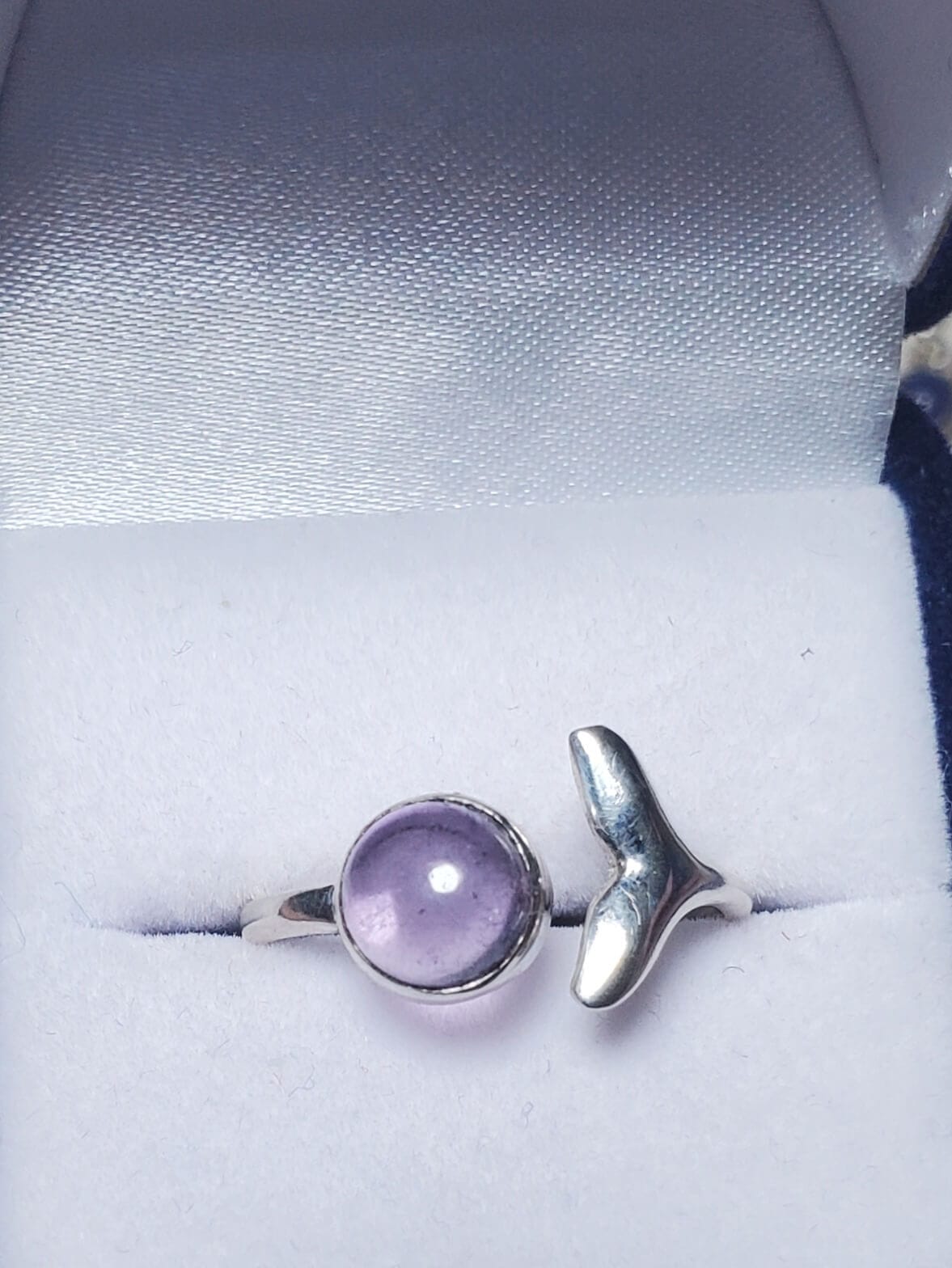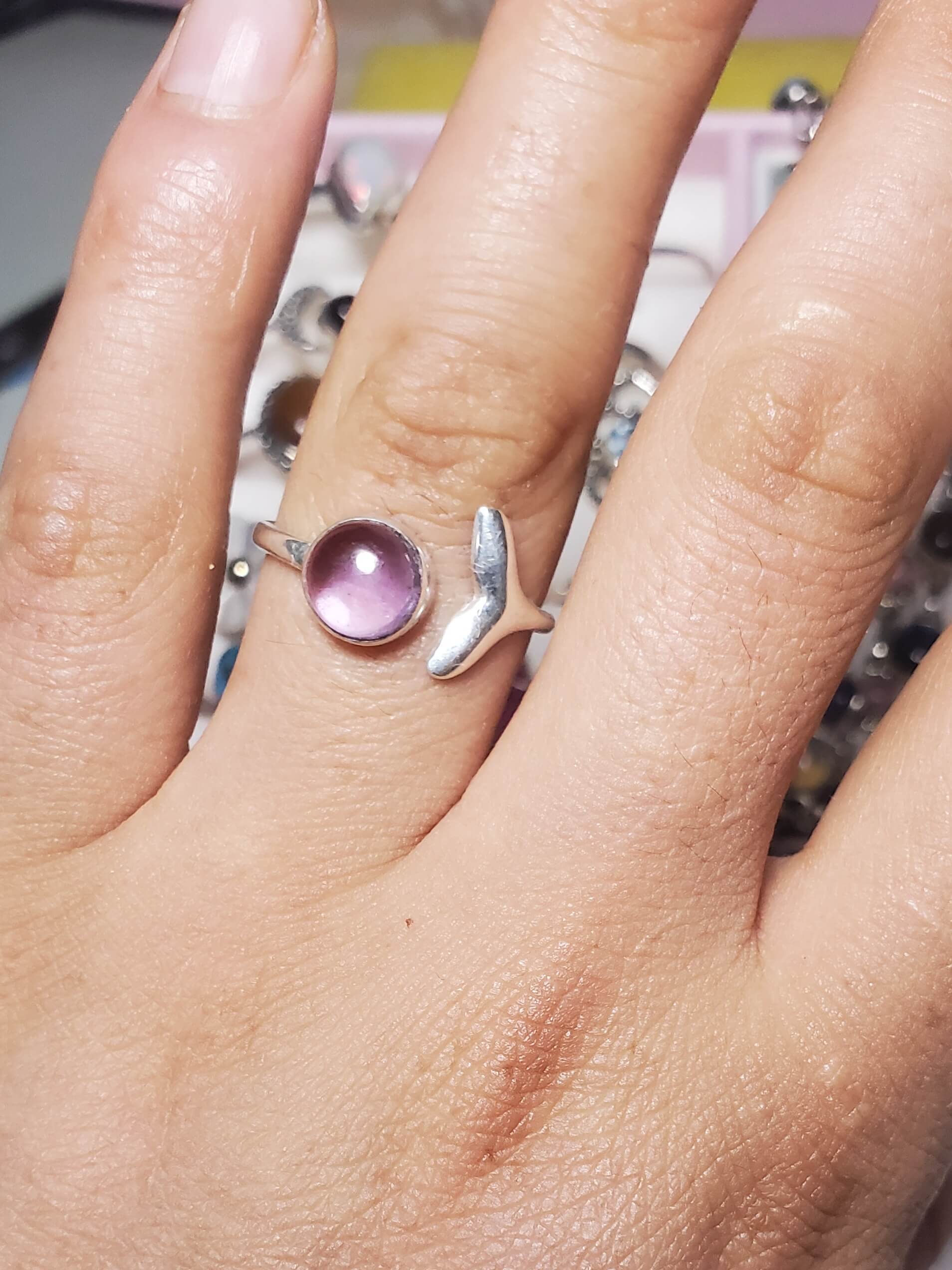 Anillo de piedra amatista natural acompañado con una cola de sirena elaborado a mano en plata 925, una joya única que eleva tu energía y envuelve tu día en una serenidad luminosa. Un anillo exclusivo para mujeres que desean conectar belleza, equilibrio y propósito.